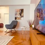 The property provides a balcony furnished with a writing table, along with modern amenities like a flat-screen TV with satellite channels. Enjoy the comfort of a bathroom in the apartment, which is equipped with hair dryers and bath sheets.